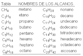 El carbono se enlaza mediante orbitales híbridos sp3 formando 4 enlaces simples en disposición tetraédrica. Nomenclatura